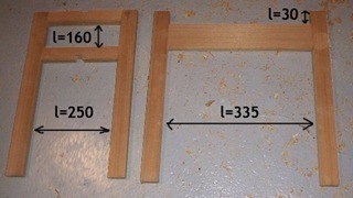 1.Сделаем заготовки, как показано на рисунке, где В - ширина в мм, S - толщина в мм, материал - дерево.